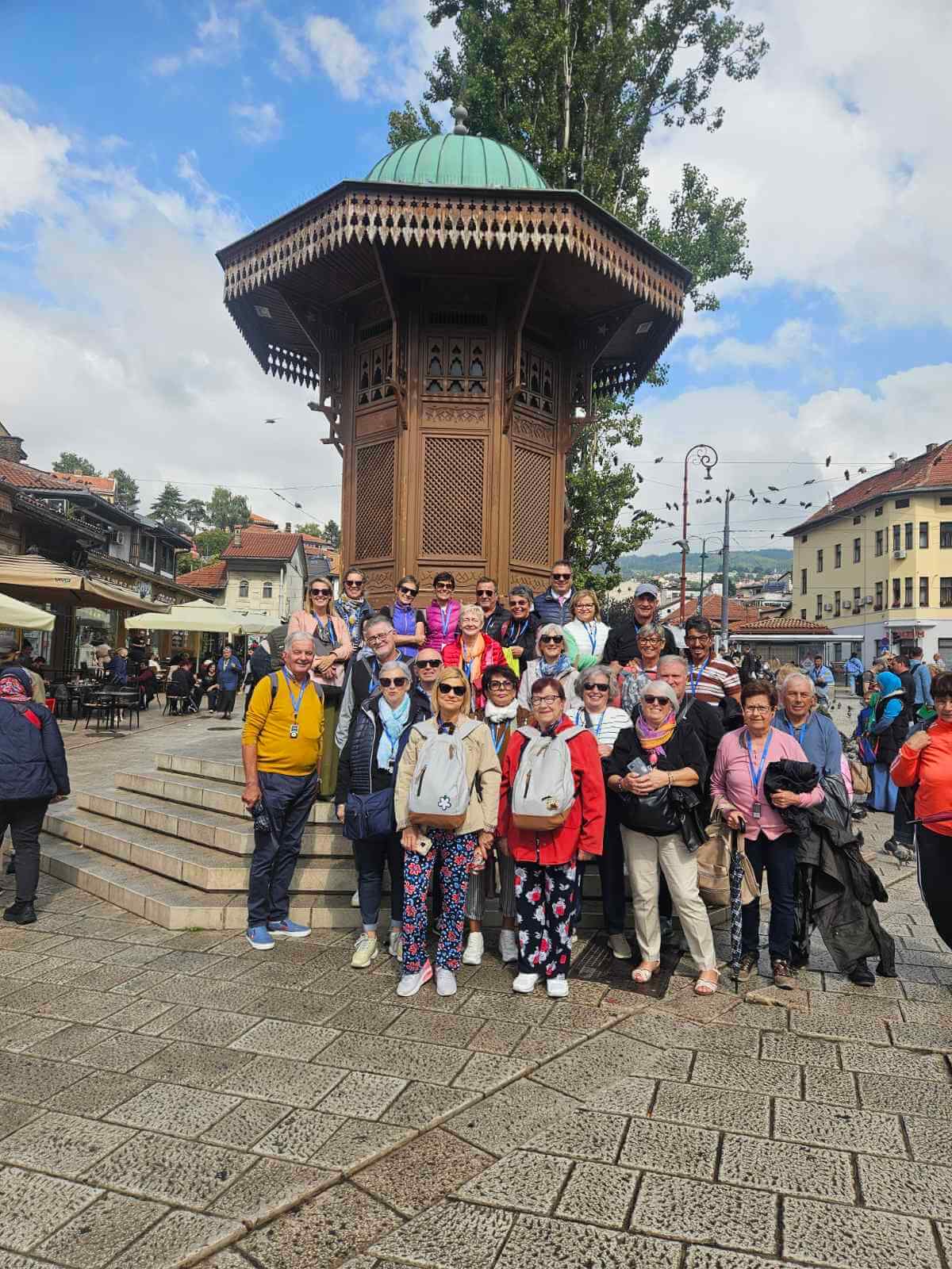 Il tour parte dal Municipio di Sarajevo e prosegue verso Baščaršija con la fontana Sebilj e la storica via Kazandžiluk, dove conoscerai l’artigianato del rame e l’importanza del caffè bosniaco. L’itinerario include il caravanserraglio medievale, la Moschea di Gazi Husrev-beg con la Torre dell’Orologio, il bazar ottomano Bezistan, il punto d’incontro delle culture, la sinagoga ebraica, la Cattedrale del Sacro Cuore, le Rose di Sarajevo, la Chiesa ortodossa e il Ponte Latino, luogo dell’assassinio di Francesco Ferdinando.